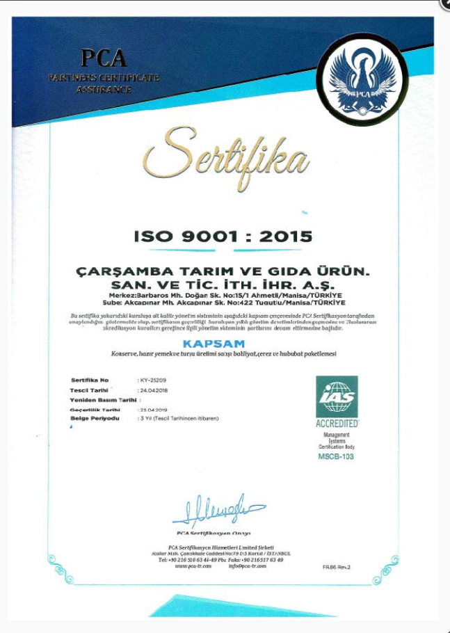 Sahip Olduğumuz Sertifikalar